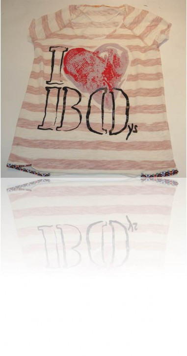 T-SHIRT BESTEHT AUS REINER BAUMWOLLE. MIT ROSA WEISSEN STREIFEN UND HERZMOTIV PATCH UND LABEL PRINT . SOWIE LABEL PLAKETTE AUS METALL UNTEN AN DER RÜCKSEITE.
