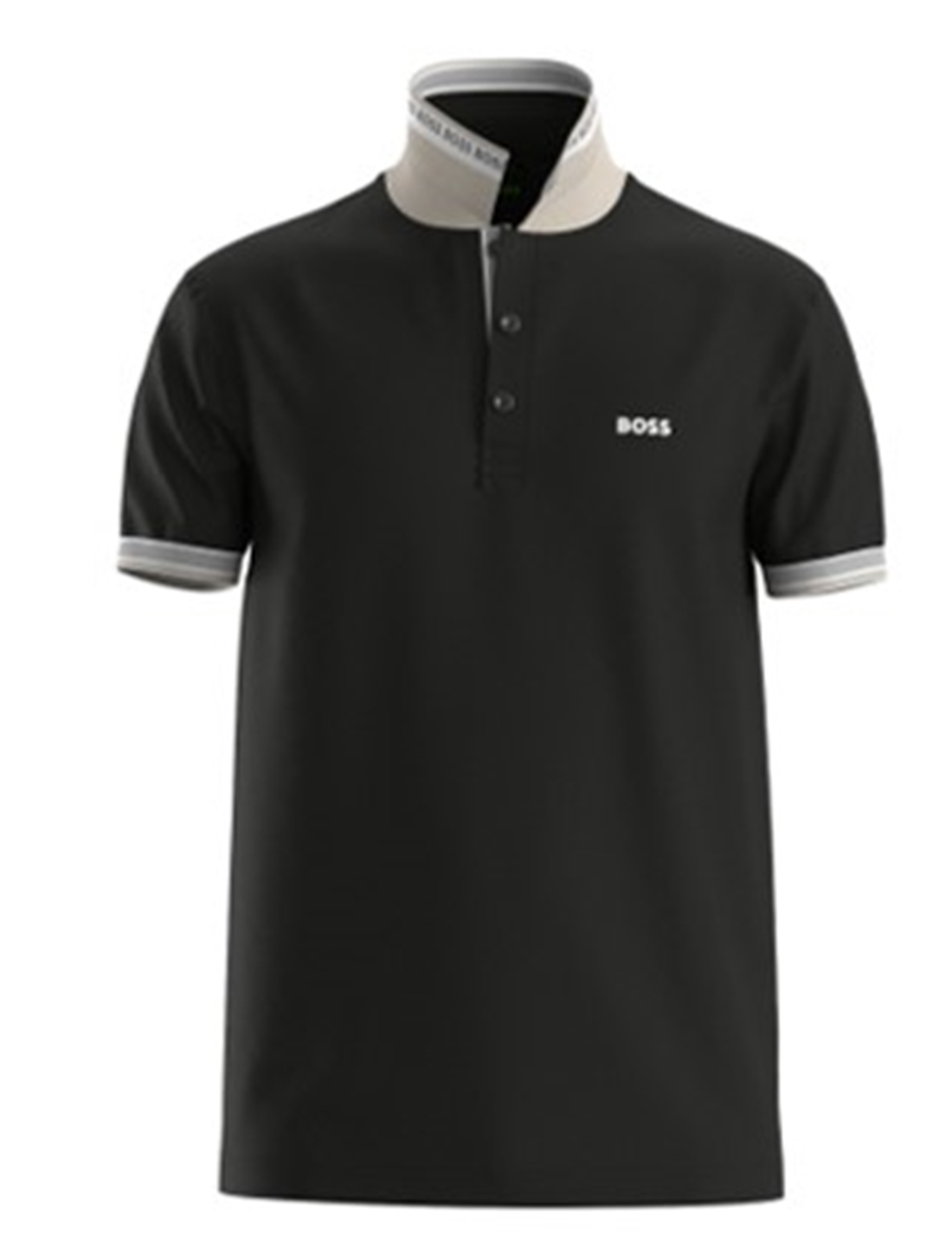 BOSS Poloshirt mit gerader Passform. Schlage den Kragen hoch, um die Logo-Details sichtbar zu machen. Atmungsaktiver Baumwoll-Piqué. Sportive Streifen und kontrastfarbenes Logo.