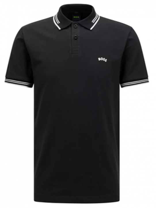 Boss Slim-Fit Poloshirt Paul Curved aus Stretch-Baumwolle mit geschwungenem Logo schwarz 001