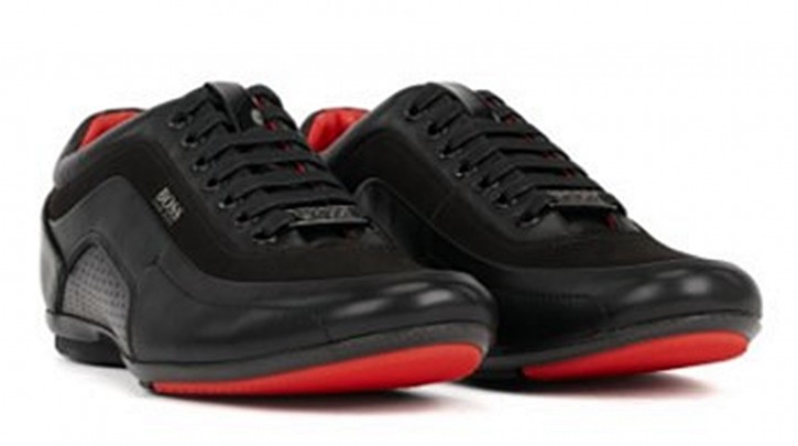 DIESER SNEAKER VON BOSS MIT DEM NAMEN HB RACING 1.SPORTIVER LOOK IN LEDER MIT STRUKTURIERTEN ELEMENTEN .