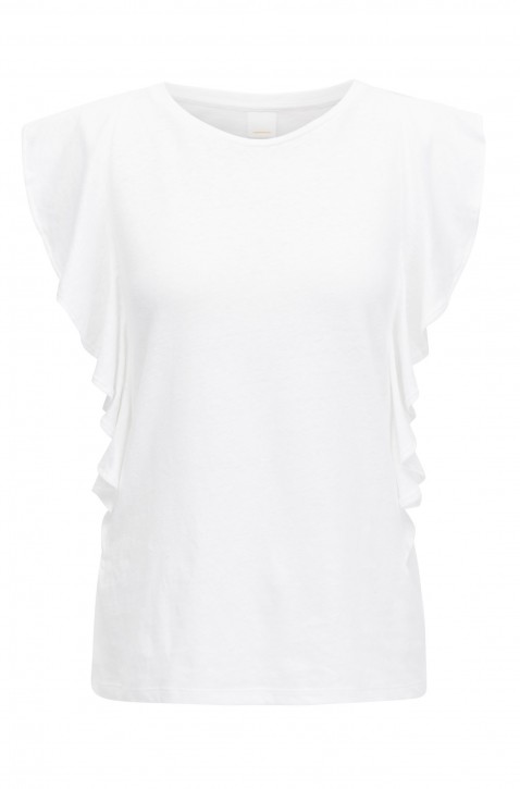 DETAILS : REGULAR FIT – RUNDHALSAUSSCHNITT – FLÜGEL ARM – RÜSCHEN .
