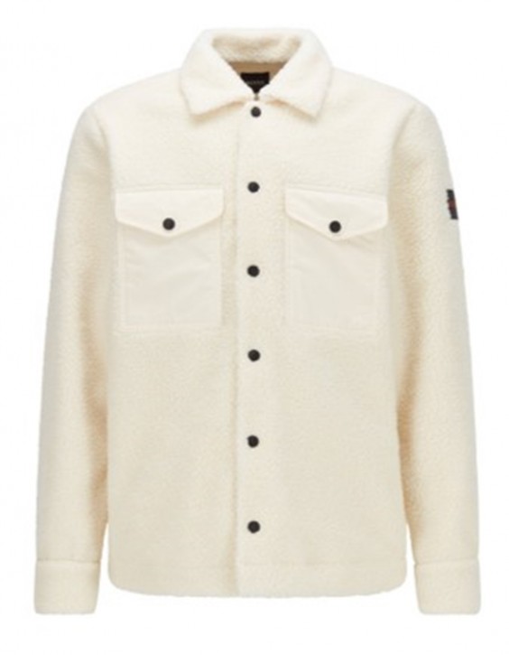 Hugo Boss Oversized Overshirt Lom_1 aus Teddy-Kunstfell weiß 131