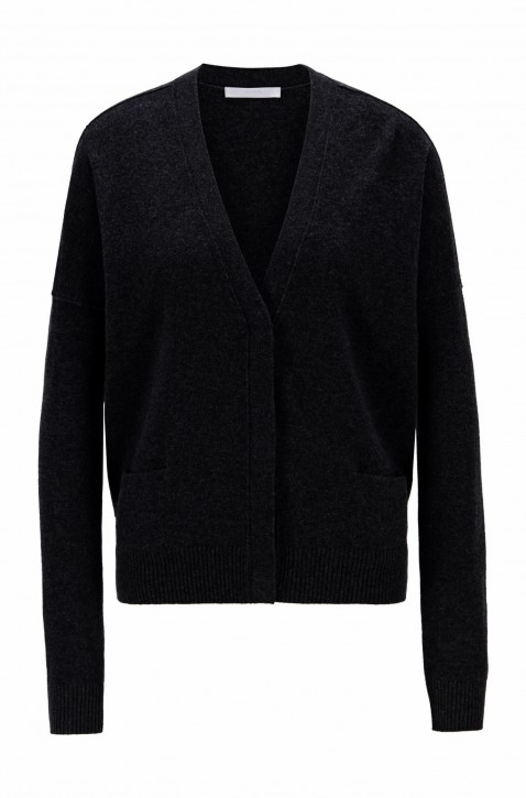 Zeitgemäßer BOSS Cardigan aus leichter Schurwolle mit edlem Kaschmir-Anteil. Die locker geschnittene Damen-Strickjacke mit V-Ausschnitt ist mit eingestrickten Taschen und verdeckten Knöpfen auf der Vorderseite ausgestattet. Gerippte Bündchen an Saum und Ärmeln sorgen für langanhaltende Formbeständigkeit und setzen strukturelle Kontraste.