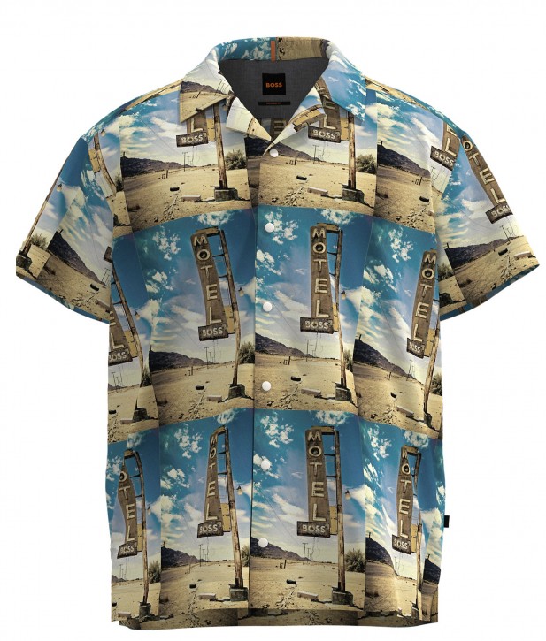 Hugo Boss Relaxed-Fit Hemd Lapis_2 aus Baumwolle mit Motel-Print Farbe 131