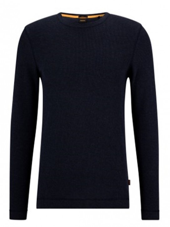 Hugo Boss Slim-Fit Longsleeve Tempest aus Baumwolle mit Waffelstruktur dunbkelblau 404