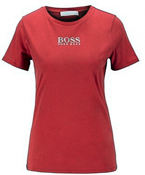 Klassiker mit Chic: das BOSS T-Shirt mit Rundhalsausschnitt. Bei der Herstellung und Vollendung unserer Produkte sind wir immer auf der Suche nach nachhaltigeren Lösungen. Das gerade geschnittene Damen-Shirt ist aus reiner Bio-Baumwolle gefertigt, die sich besonders soft anfühlt und natürlichen Tragekomfort bietet. Auf der Brust befindet sich ein Logo der neuen Saison, das mit funkelnden Kristallen gefüllt ist.