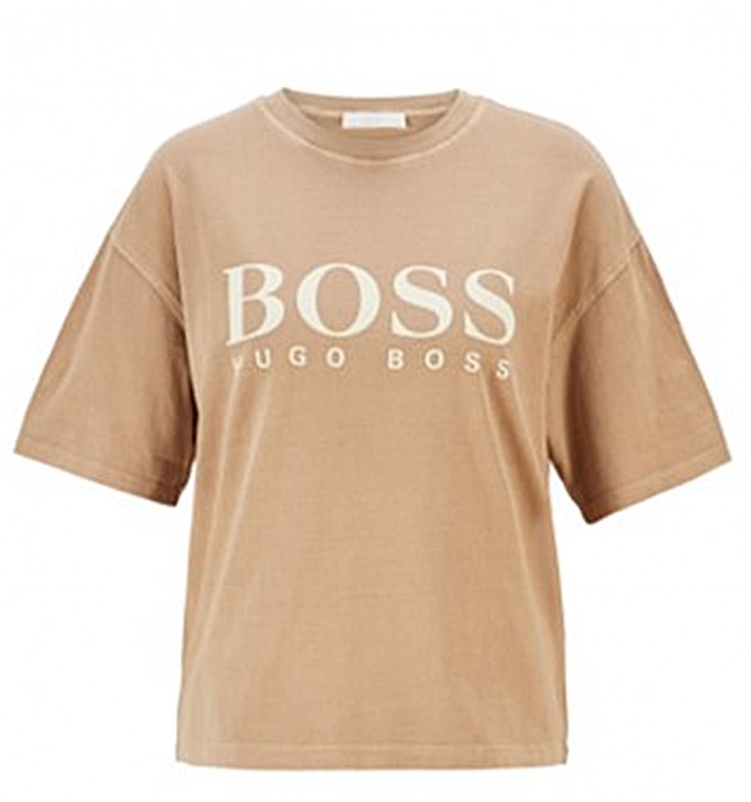 Zeitgemäßes BOSS T-Shirt mit Statement-Slogan am Nacken. Das Damen-Shirt aus Bio-Baumwolle fühlt sich besonders soft an. Ein BOSS Logo auf der Brust sorgt für einen ikonischen Look. Überschnittene Schultern, die lockere Passform und das stückgefärbte Finish sorgen für einen legeren Look.