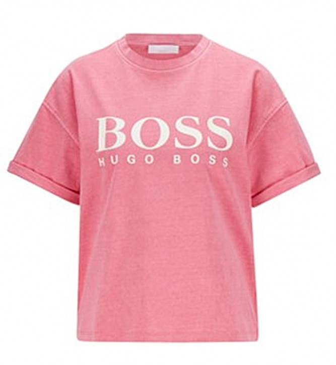 Zeitgemäßes BOSS T-Shirt mit Statement-Slogan am Nacken. Das Damen-Shirt aus Bio-Baumwolle fühlt sich besonders soft an. Ein BOSS Logo auf der Brust sorgt für einen ikonischen Look. Überschnittene Schultern, die lockere Passform und das stückgefärbte Finish sorgen für einen legeren Look.