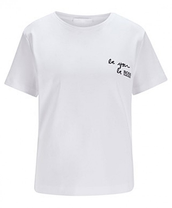 Zeitgemäßes BOSS T-Shirt aus strapazierfähiger Supima-Baumwolle mit intensiver Farbgebung. Das gerade geschnittene Damen-Shirt feiert den Internationalen Frauentag mit einem Slogan und einem BOSS Logo auf der Brust. Der #eachforequal Hashtag auf der Rückseite sorgt für ein markantes Finish.