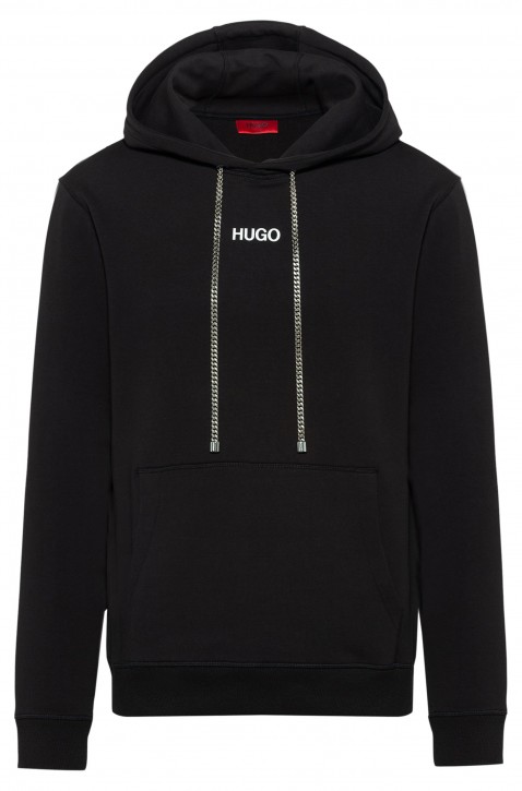 HUGO Kapuzen-Sweatshirt DUTURE aus Baumwolle mit Foto-Print und Kettenbesatz schwarz