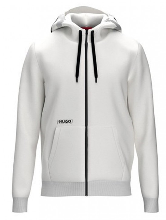 HUGO Sweatjacke mit Reißverschluss. Der gerade geschnittene Herren-Hoodie aus reiner Baumwolle mit komfortabler French-Terry-Struktur ist mit einem markanten HUGO Logo an der Kapuze versehen. Über der Kängurutasche zeigt sich ein weiteres Branding.