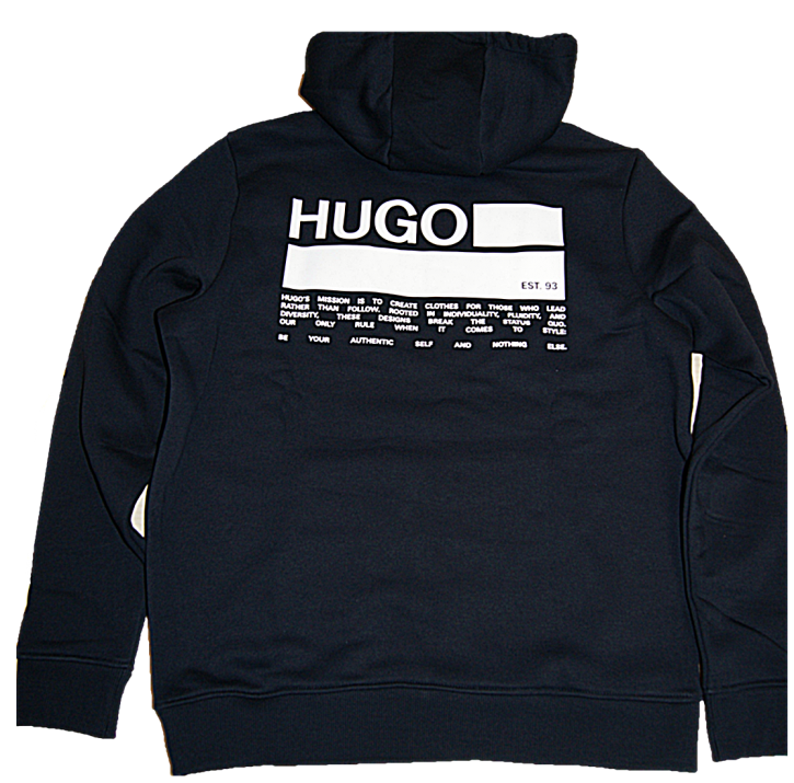 HUGO Kapuzen-Sweatshirt DOYANO aus recycelter Baumwolle und Polyester mit einer Grafik auf der Rückseite. Der locker geschnittene Herren-Pullover aus Baumwoll-Fzeigt sich im urbanen Look mit HUGO Logo auf der Brust -und meisterhaften Tunnelzug.