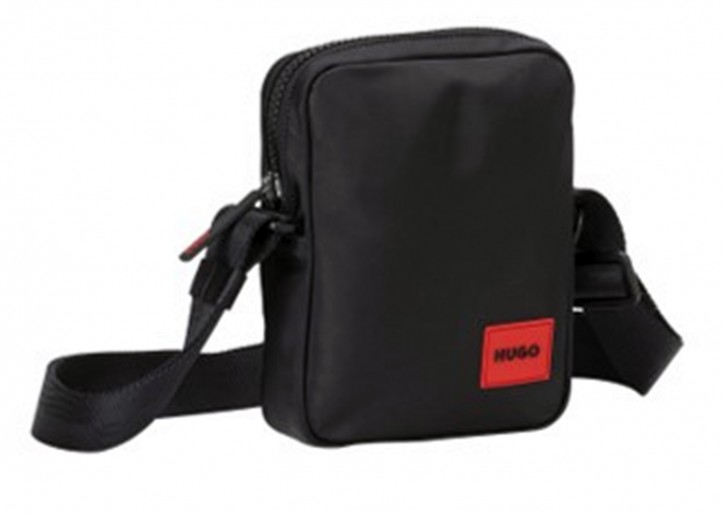 Hugo Reporter-Tasche Ethon_NS zip aus recyceltem Nylon mit rotem Logo-Label schwarz 002