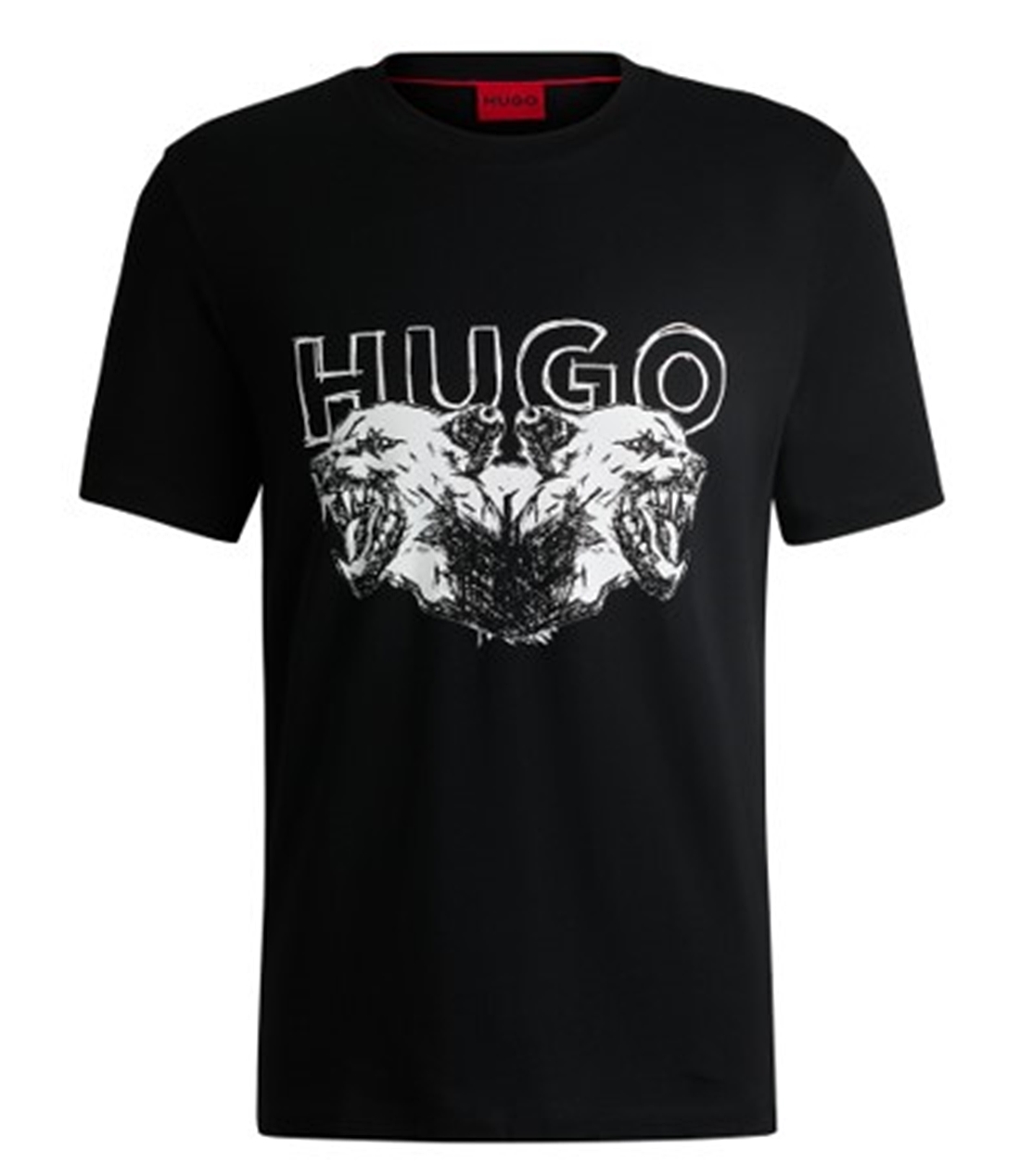 Das HUGO T-Shirt mit markanter Animal-Grafik auf der Brust verleiht Casual-Looks einen Hauch Attitude. Legere gerade Passform. Atmungsaktiver Baumwoll-Jersey.